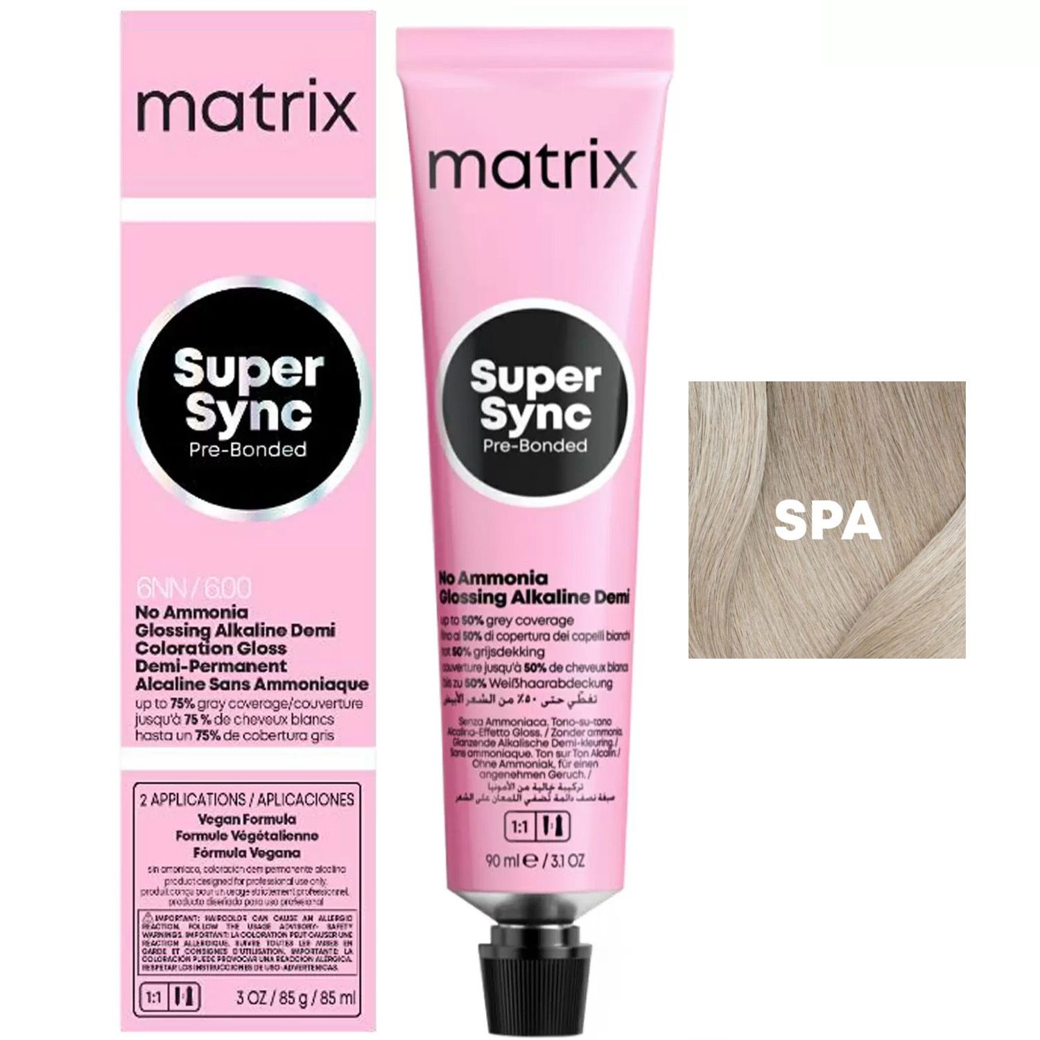 Super Sync идеален для тонирования после осветления порошком. Технология поднимает натуральную базу до 1/2 уровня тона. Краситель эффективно перекрывает до 75% седины*. Благодаря новому бондеру в составе красителя вы сможете сохранить качество волос окрашивание за окрашиванием. Технология придает волосам глянцевый блеск. обеспечивает легкость расчесывания по всей длине.