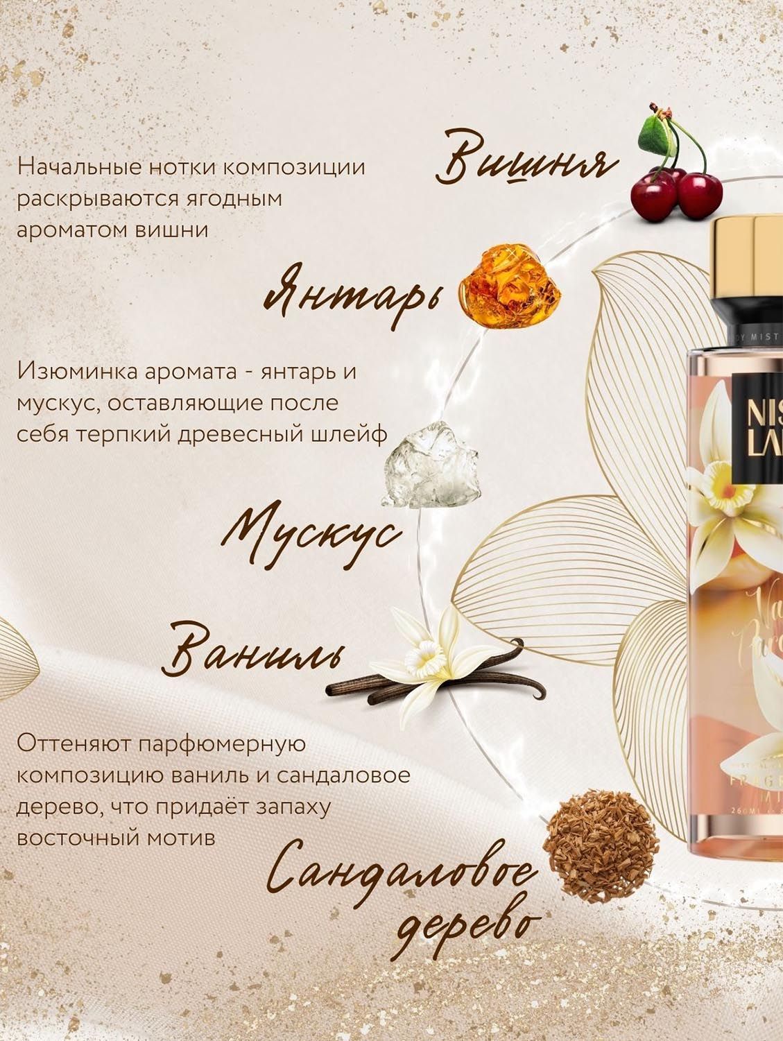 Аромат миста для тела — сладкий аромат вишни и ванили.
