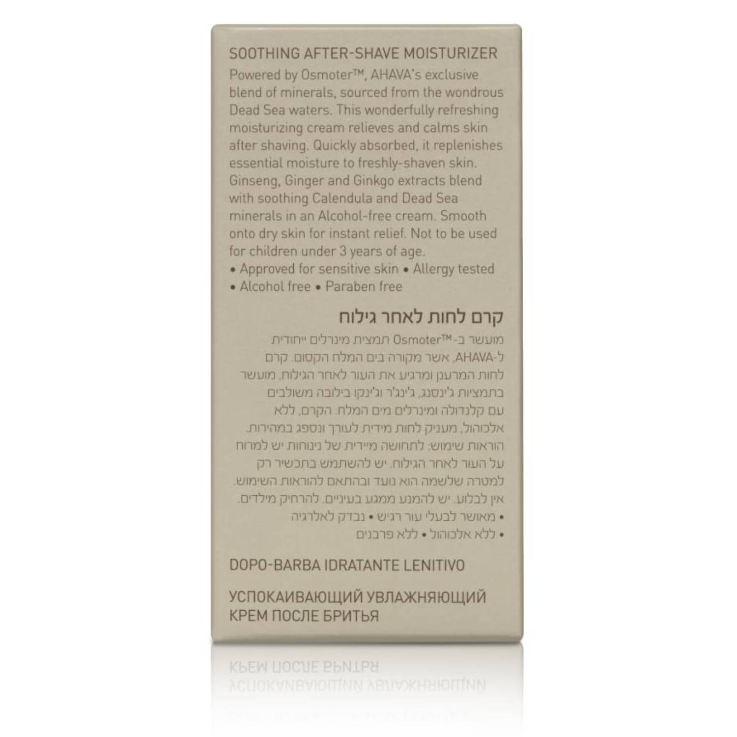 Освежающий быстро впитывающийся увлажняющий крем, обогащенный минералами Мертвого моря, успокаивает и смягчает кожу после бритья. Серия косметической продукции Ахава для мужчин призвана улучшить внешний вид кожи и цвет лица, сделать кожу гладкой, придать ей энергию. Крем способствует заживлению мелких порезов, содержит антибактериальные компоненты.