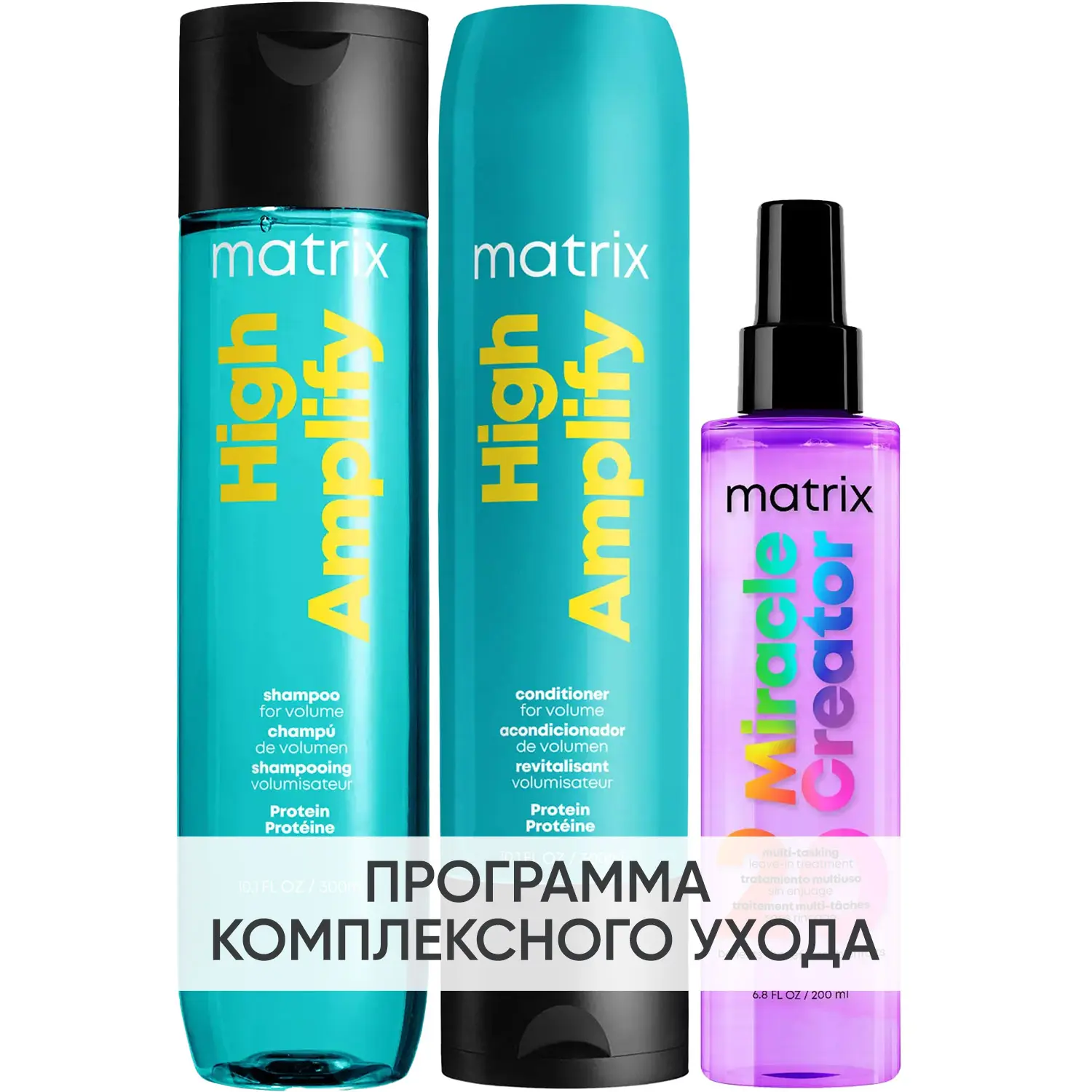 Эксперты проекта «Космедэль»* предлагают ПРОГРАММУ КОМПЛЕКСНОГО УХОДА Matrix High Amplify для увеличения объема и густоты волос. Комплексный уход представляет собой дополняющие друг друга средства, совместное использование которых будет максимально эффективным. Первым шагом программы является базовый уход (очищение + питание), вторым – дополнительный уход (средства, усиливающие эффект базовой программы и применяемые постоянно или периодически).