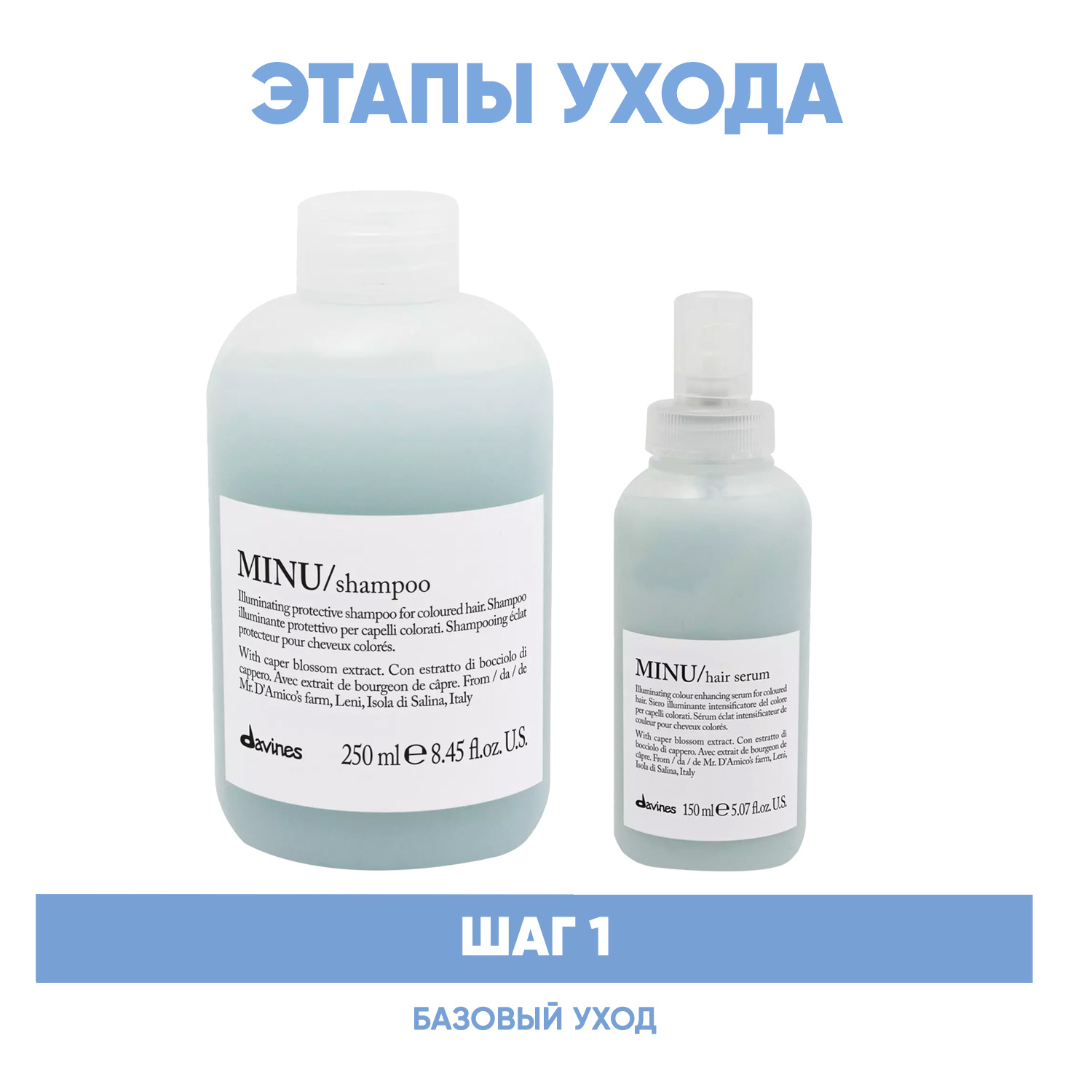 Эксперты проекта «Космедэль»* предлагают ПРОГРАММУ КОМПЛЕКСНОГО УХОДА Davines Essential Haircare Minu для тонких окрашенных волос. Комплексный уход представляет собой дополняющие друг друга средства, совместное использование которых будет максимально эффективным. Первым шагом программы является базовый уход (очищение + питание), вторым – дополнительный уход (средства, усиливающие эффект базовой программы и применяемые постоянно или периодически).