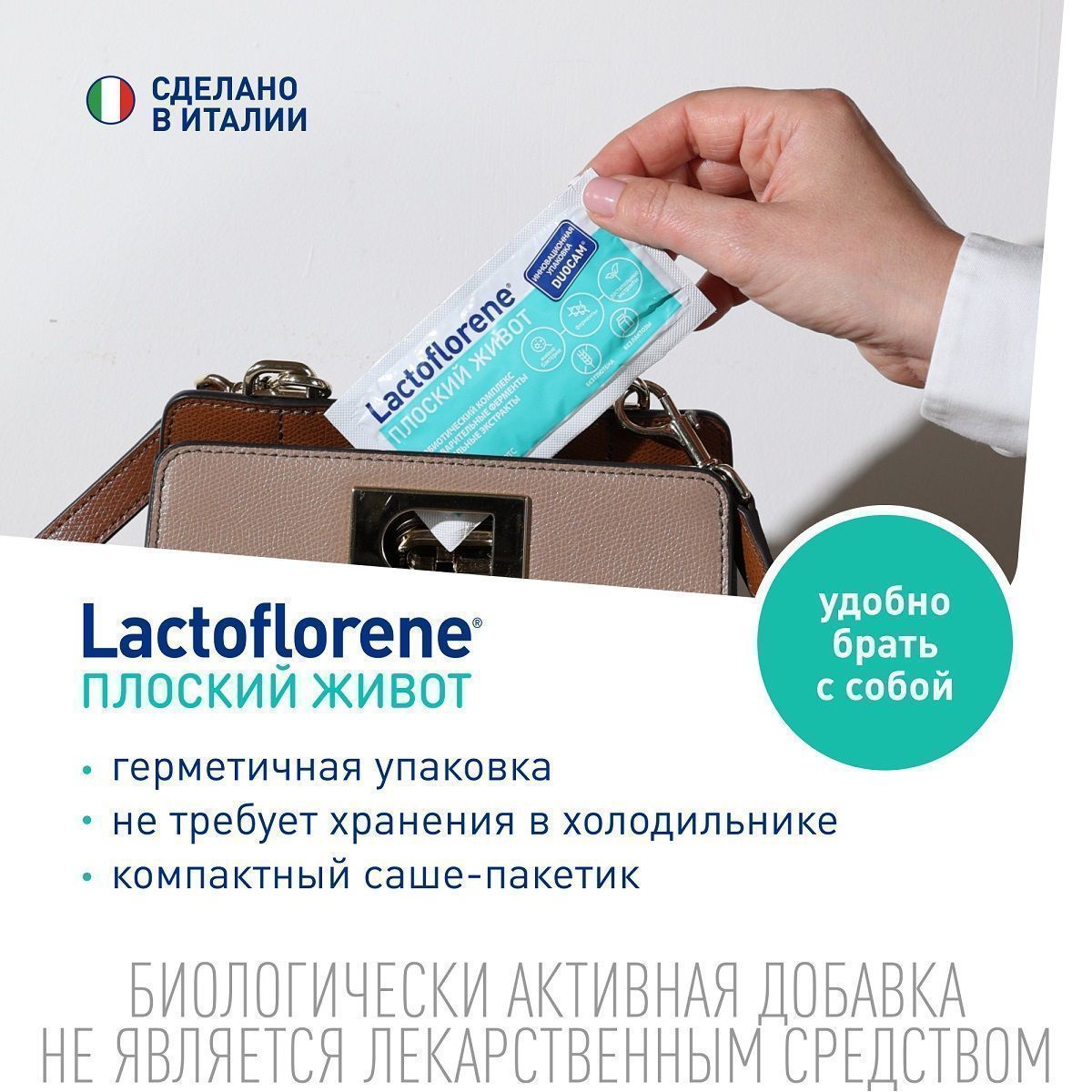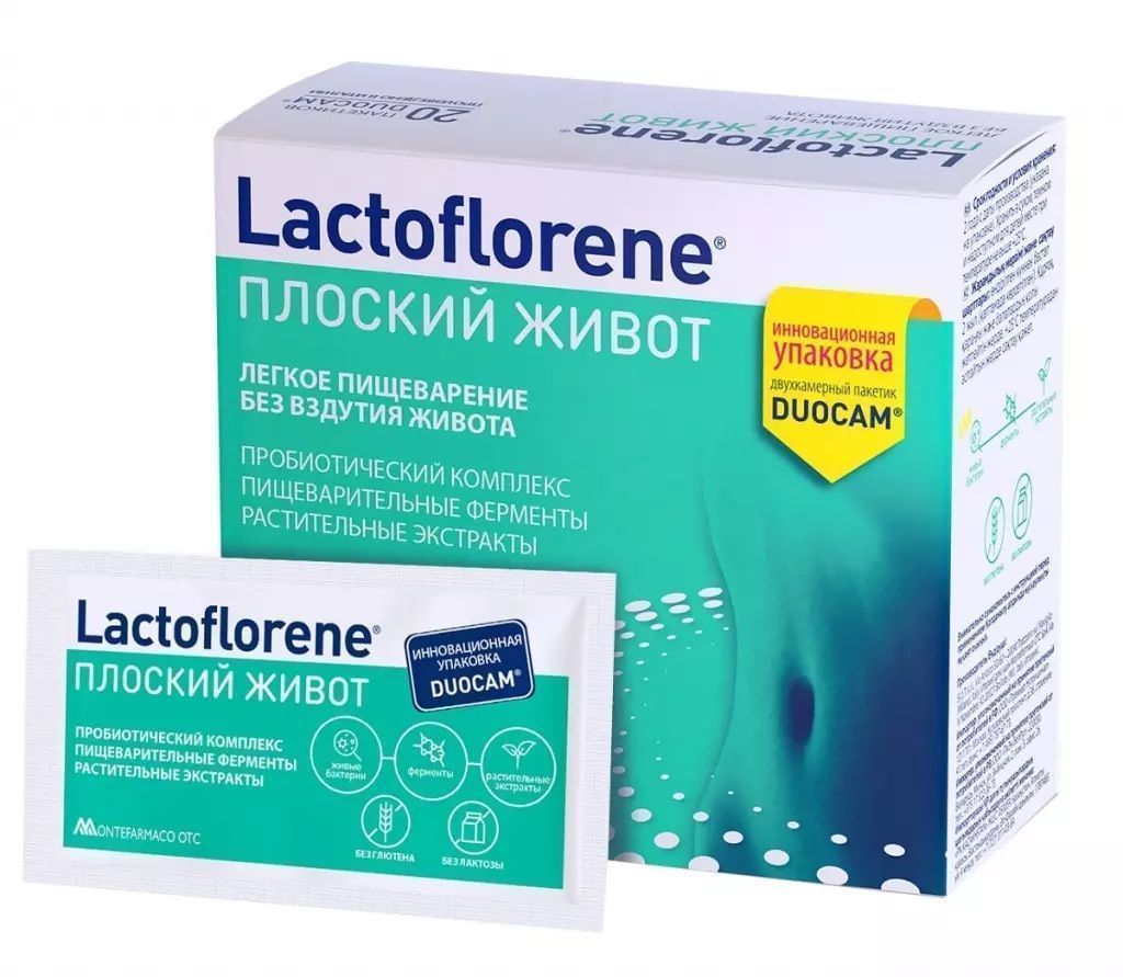 Lactoflorene "Плоский живот" – итальянская биодобавка для легкого пищеварения без вздутия живота. Помогает усвоению пищи, устраняет причины возникновения метеоризма и нормализует баланс микрофлоры кишечника. Не является лекарственным средством. Не следует использовать как замену полноценного рациона питания.