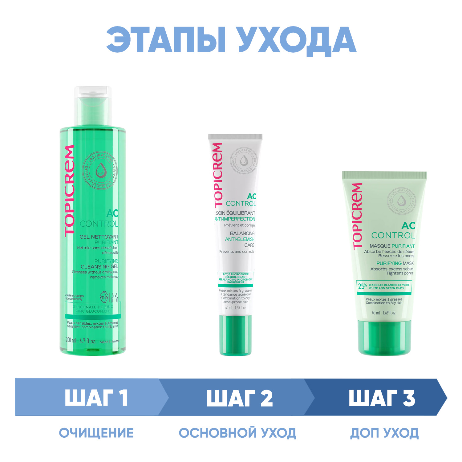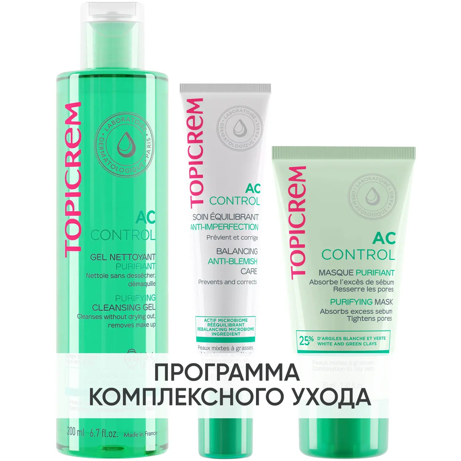 Эксперты проекта «Космедэль»* предлагают ПРОГРАММУ КОМПЛЕКСНОГО УХОДА Topicrem AC Control для комбинированной и жирной кожи, склонной к акне. Комплексный уход представляет собой дополняющие друг друга средства, совместное использование которых будет максимально эффективным. Первым шагом программы является очищение, вторым - основной уход. В третий шаг входят дополнительные средства, усиливающие эффект основной программы и применяемые постоянно или периодически на различных этапах ухода.