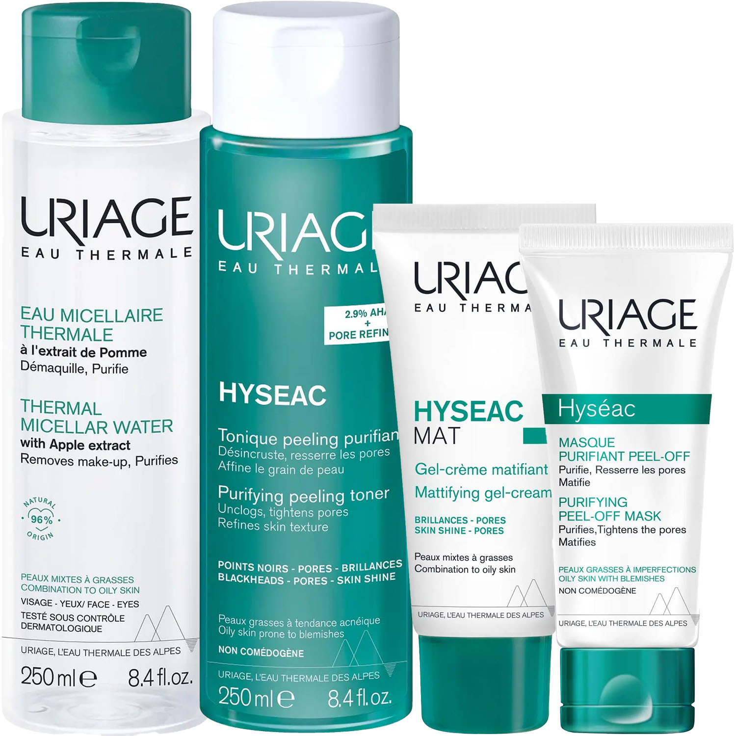 Эксперты проекта «Космедэль»* предлагают пошаговую ПРОГРАММУ КОМПЛЕКСНОГО УХОДА Uriage Hyseac для жирной и комбинированной кожи. Комплексный уход представляет собой дополняющие друг друга средства, совместное использование которых будет максимально эффективным. Первым шагом программы является очищение, вторым - основной уход. В третий шаг вошли дополнительные средства, усиливающие эффект основной программы и применяемые постоянно или периодически на различных этапах ухода.