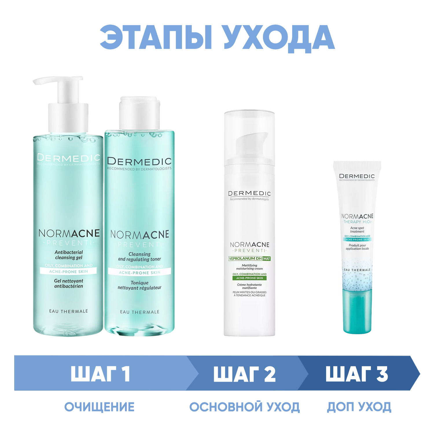 Обеспечивает длительный матирующий эффект. Действует на причины возникновения и обострения акне. Уменьшает количество бактерий, провоцирующих появление акне. Ограничивает секрецию кожного сала и сокращает расширенные поры, Некомедогенное, гипоаллергенное средство.