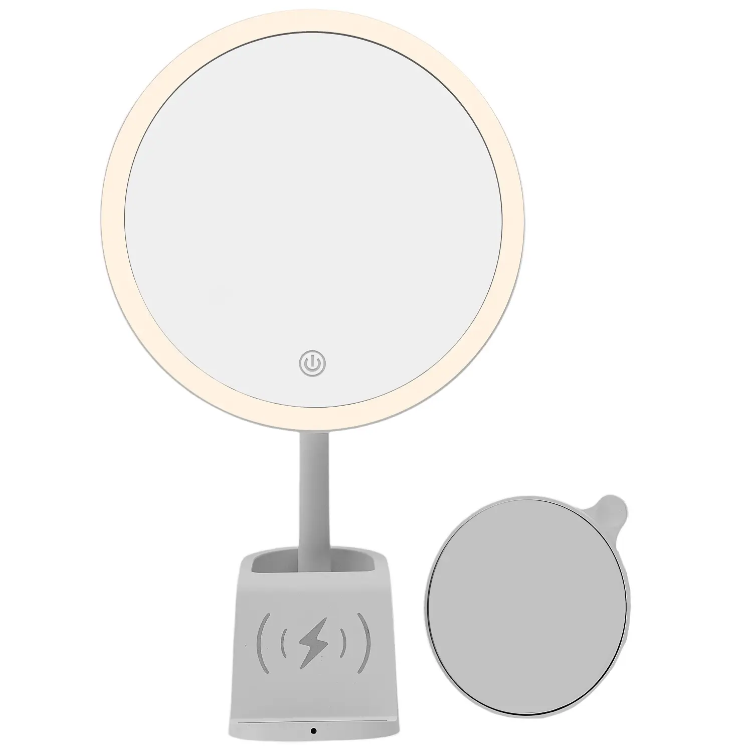 Круглое настольное зеркало без увеличения идеально подходит для макияжа, ухода за кожей и других процедур. Дополнительное съемное круглое зеркало с 5-кратным увеличением на магнитном креплении позволяет рассмотреть мельчайшие детали кожи.