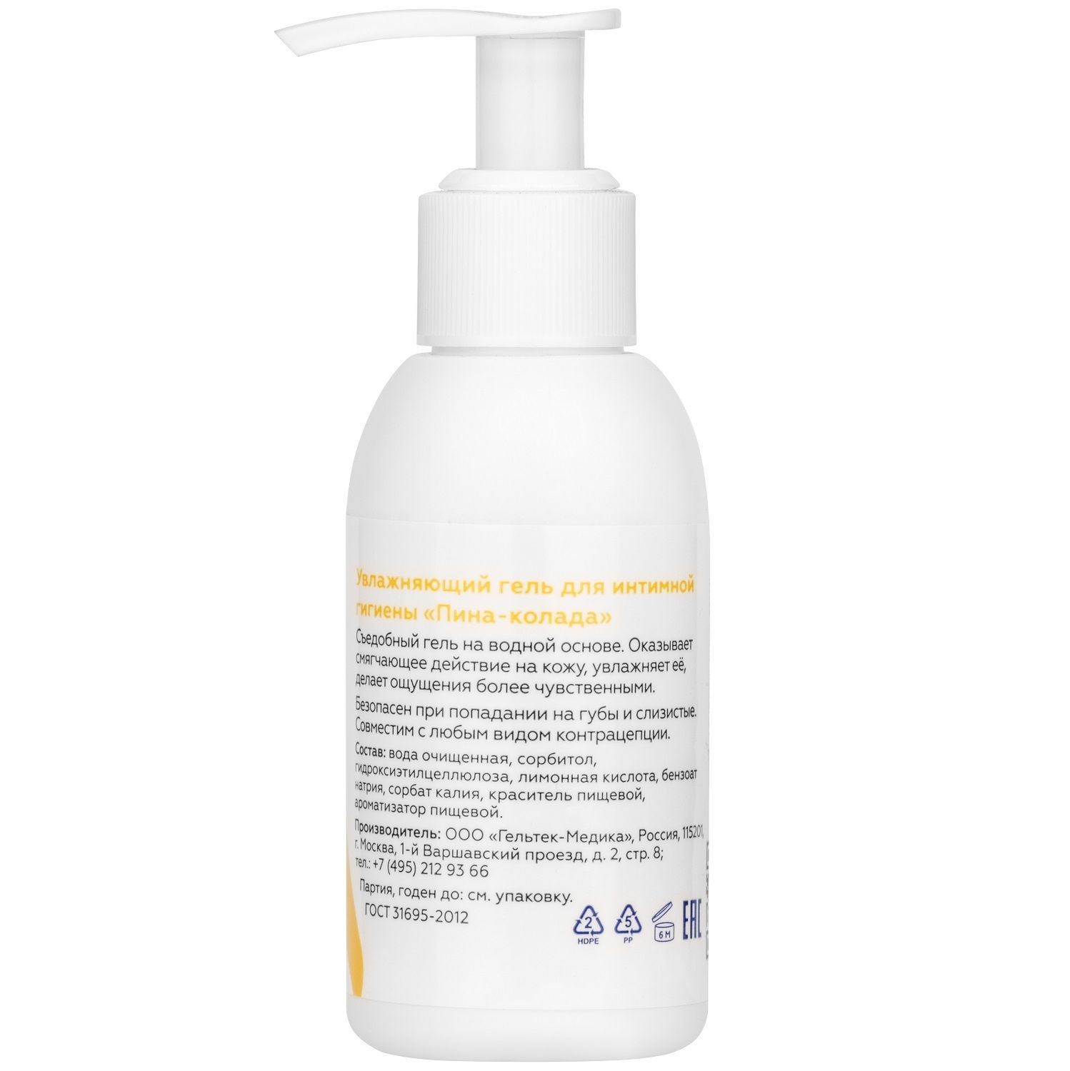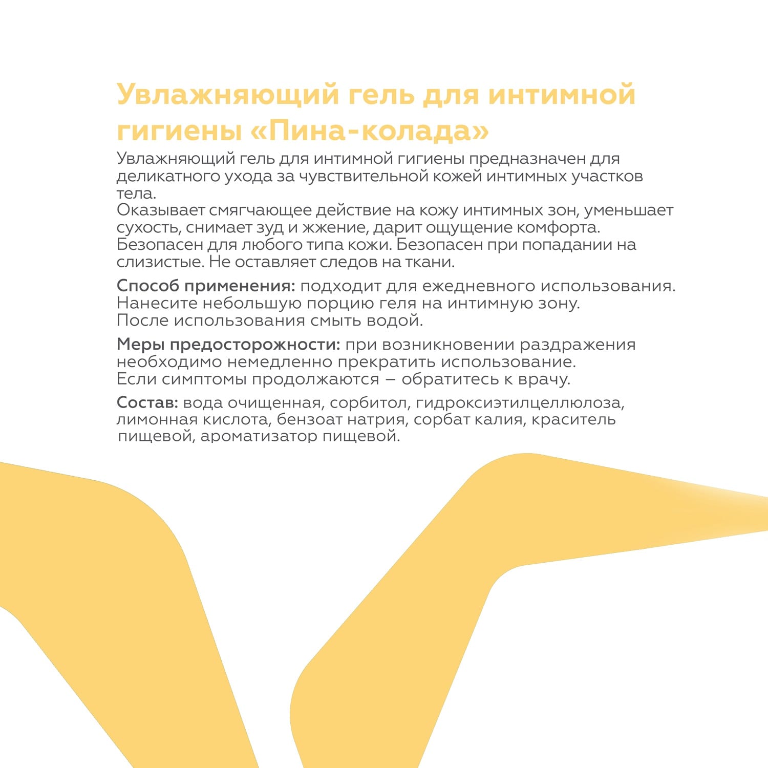 Гель обладает слабокислым рН 4,4, что соответствует кислотности женской интимной зоны. Не провоцирует раздражение, кандидоз и аллергическую реакцию. Подходит диабетикам, веганам, не конфликтует с диетами и ПП (всего 44 калорий на 100 г).