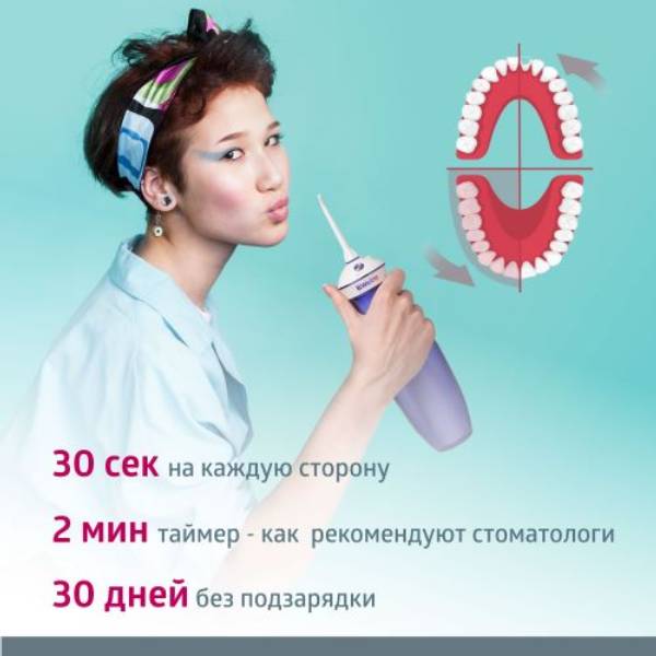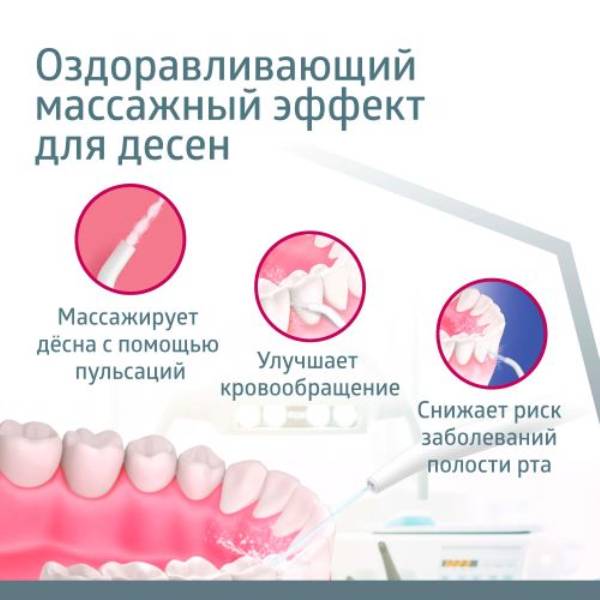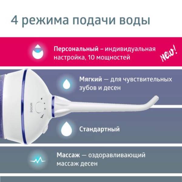 Для тех, кто пользуется ирригатором в первый раз, предусмотрен режим первоначального использования. Этот режим бережно удаляет остатки пищи и бактерий, не повреждая десен.