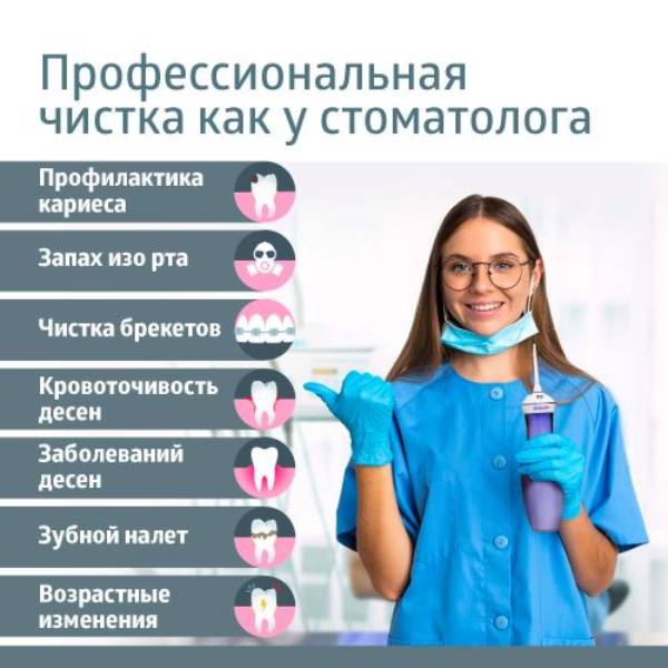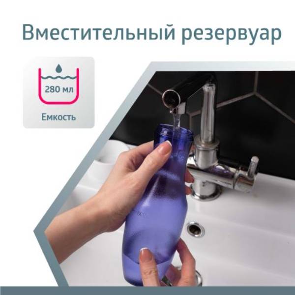 Противоскользящее покрытие ирригатора для чистки зубов обеспечивает надежную фиксацию в руке.