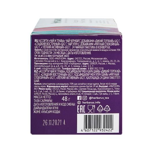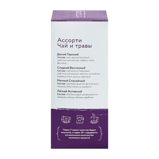В состав входят 4 вида чая по 6 пакетиков: