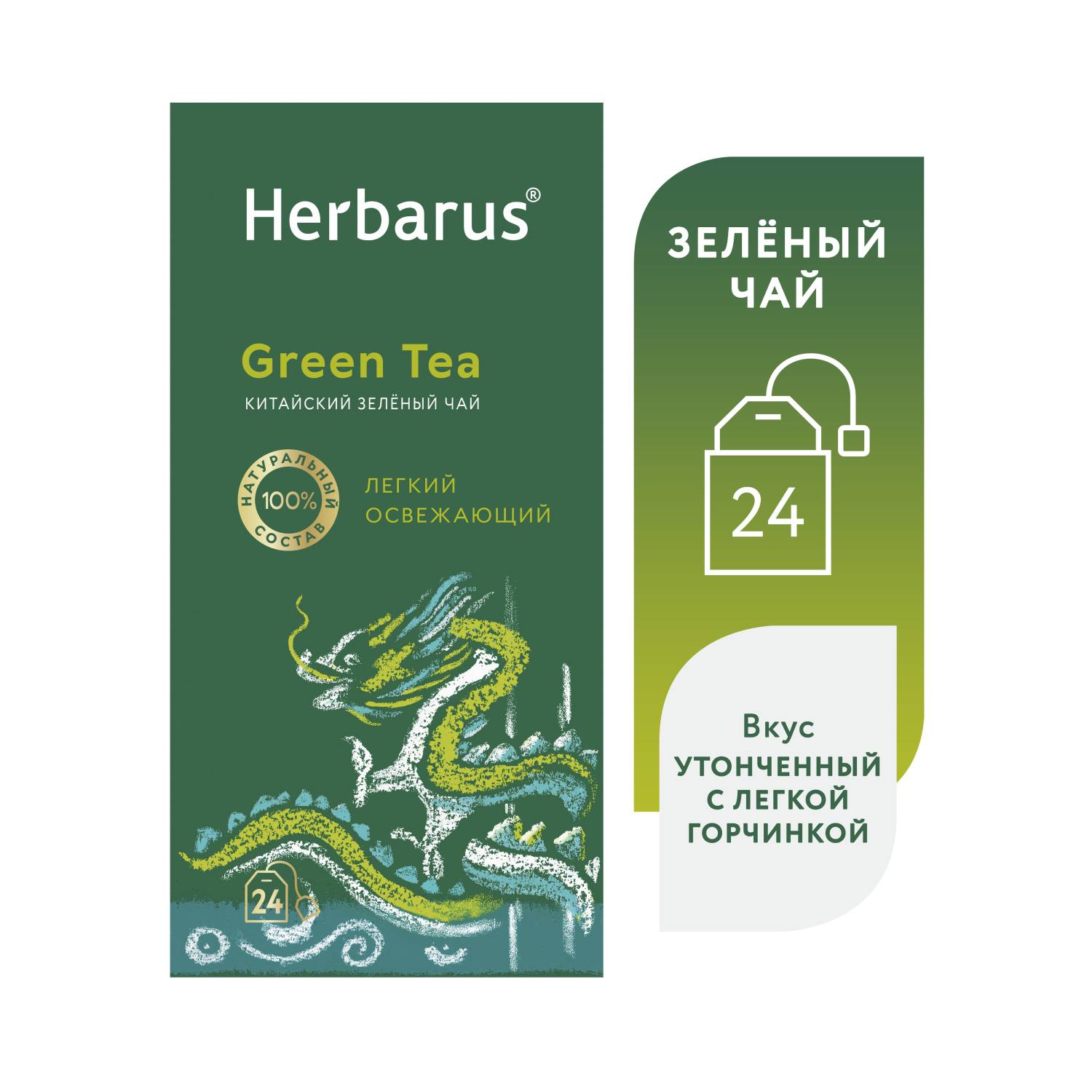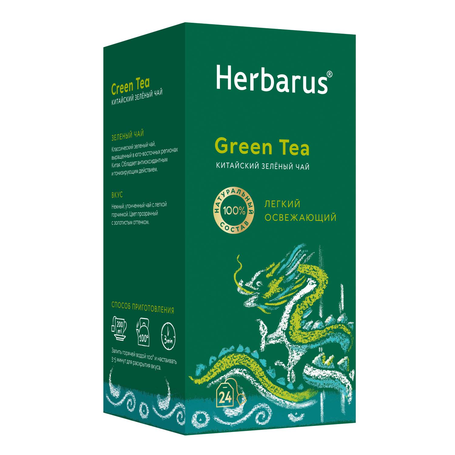 Чай зеленый китайский Green Tea, 24 пакетика х 2 г