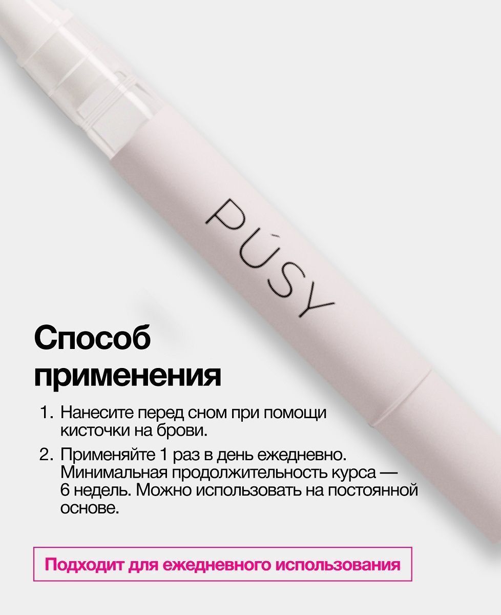 Наносите средство 1 раз в день перед сном на корни ресниц и/или бровей при помощи кисточки, возможно также нанесение непосредственно на волоски. Не смывать. Минимальная продолжительность курса – 6 недель. Можно применять на постоянной основе.