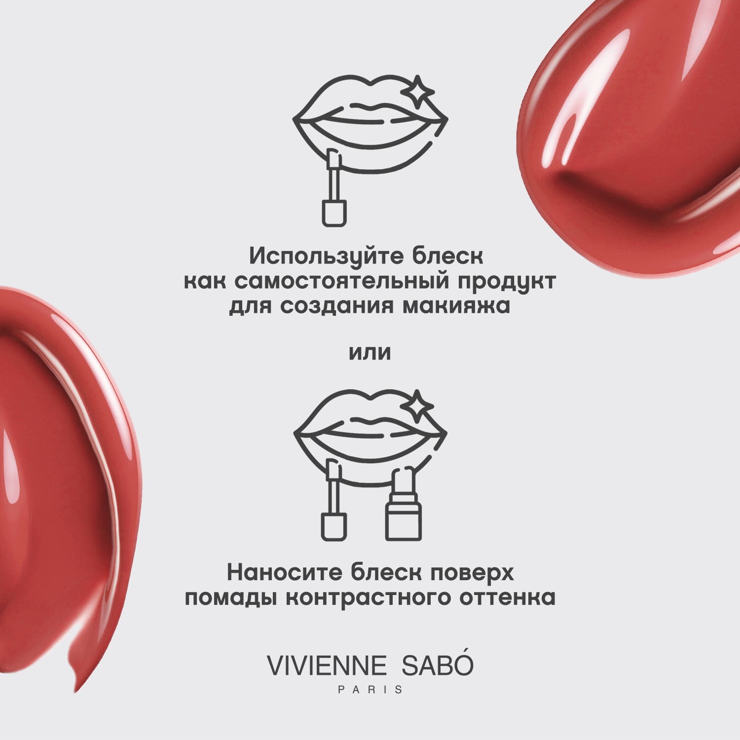 Блеск можно использовать отдельно или наносить поверх помады. Чтобы получить необычный оттенок, попробуйте нанести блеск на помаду контрастного оттенка.