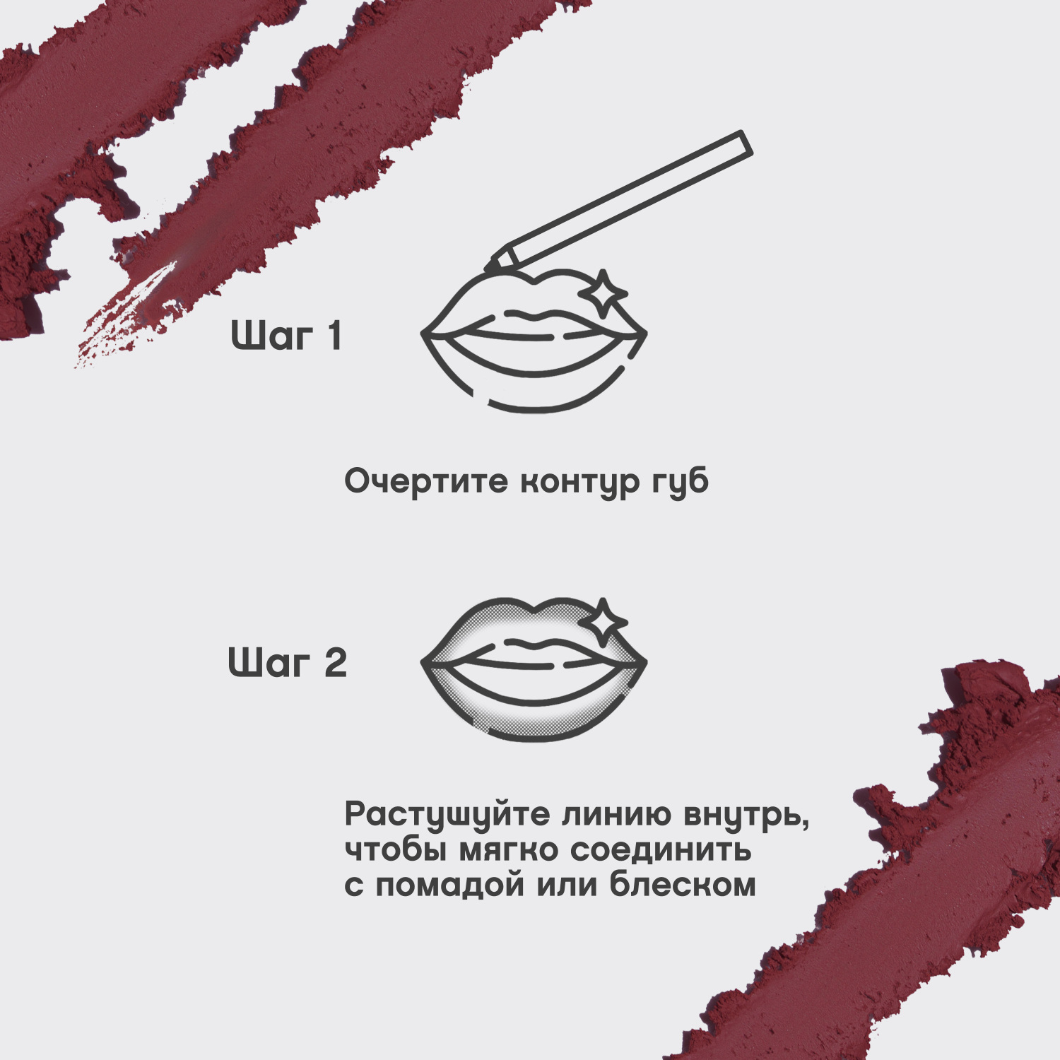 Очерчивать контур губ хорошо заточенным карандашом.