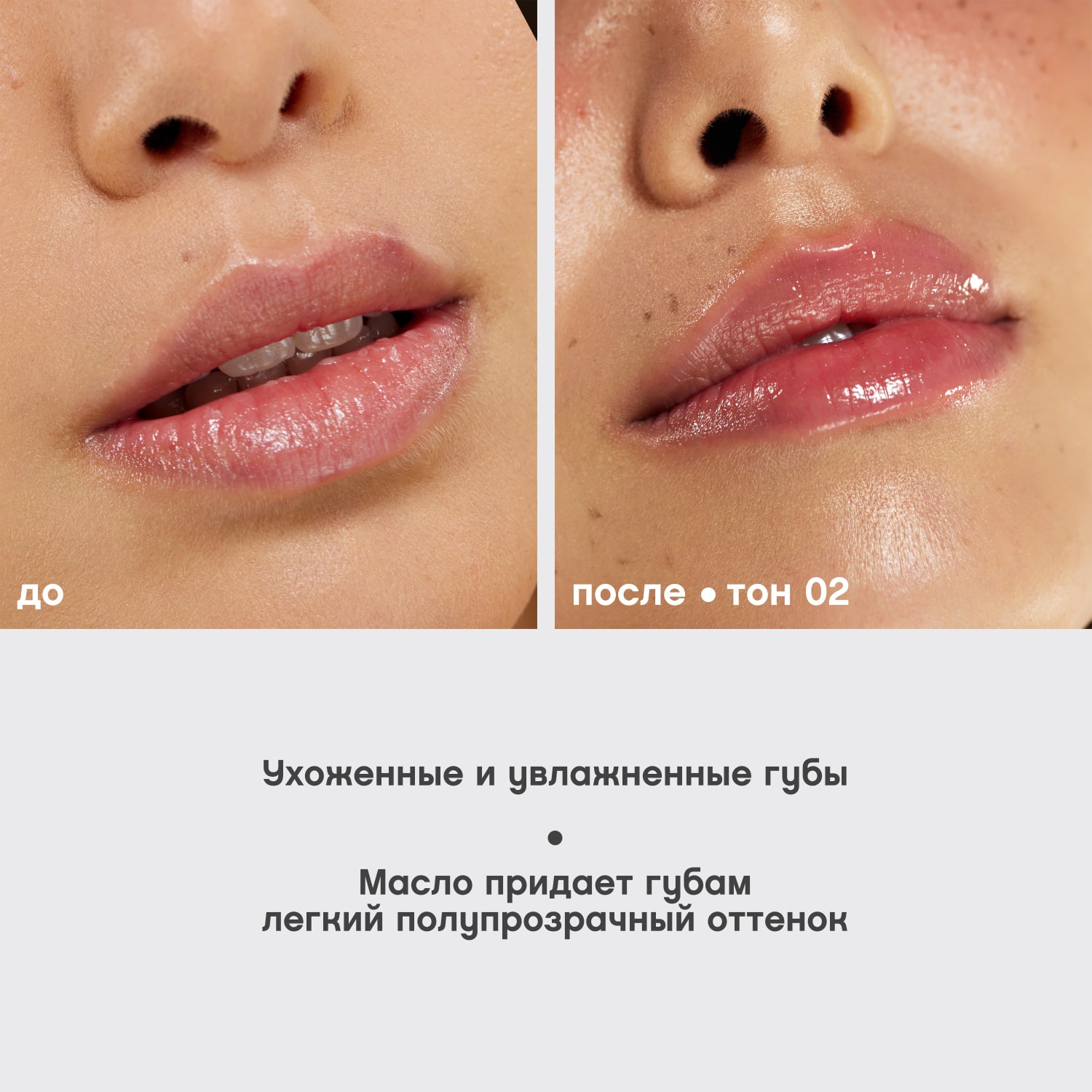 Использовать для смягчения кожи губ и придания легкого оттенка. Можно наносить масло отдельно или поверх помады и карандаша для губ, чтобы создать влажный эфффект.