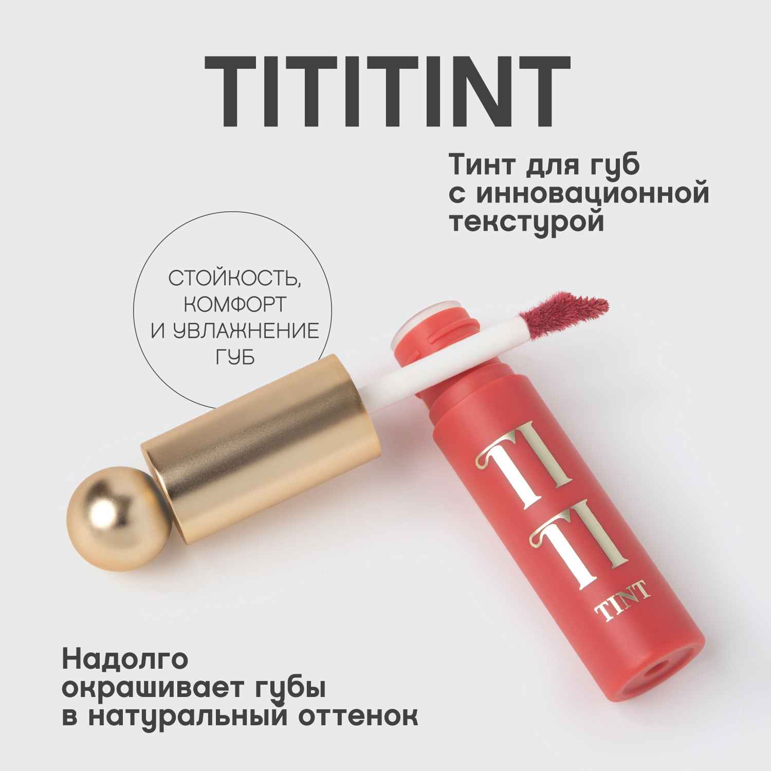 Шесть цветных тинтов Tititint с палитрой от кораллового 01 до насыщенного винного оттенка 06 имеют мягкую гелево-кремовую текстуру для макияжа с влажным финишем. Стойкая и тинтующая, но в то же время нежная текстура обволакивает губы невесомой вуалью, надолго окрашивая их в натуральный оттенок.