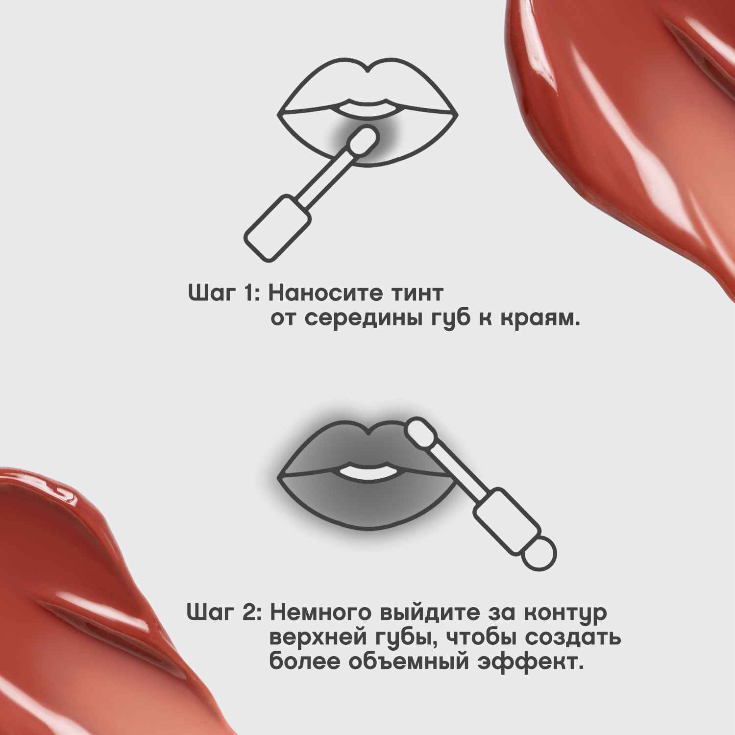 Наноси тинт от середины губ к краям. Для того, чтобы добавить губам объем без использования карандаша, нанеси тинт, немного заходя за контур верхней губы.