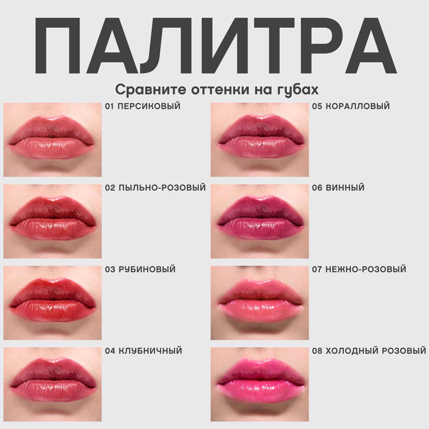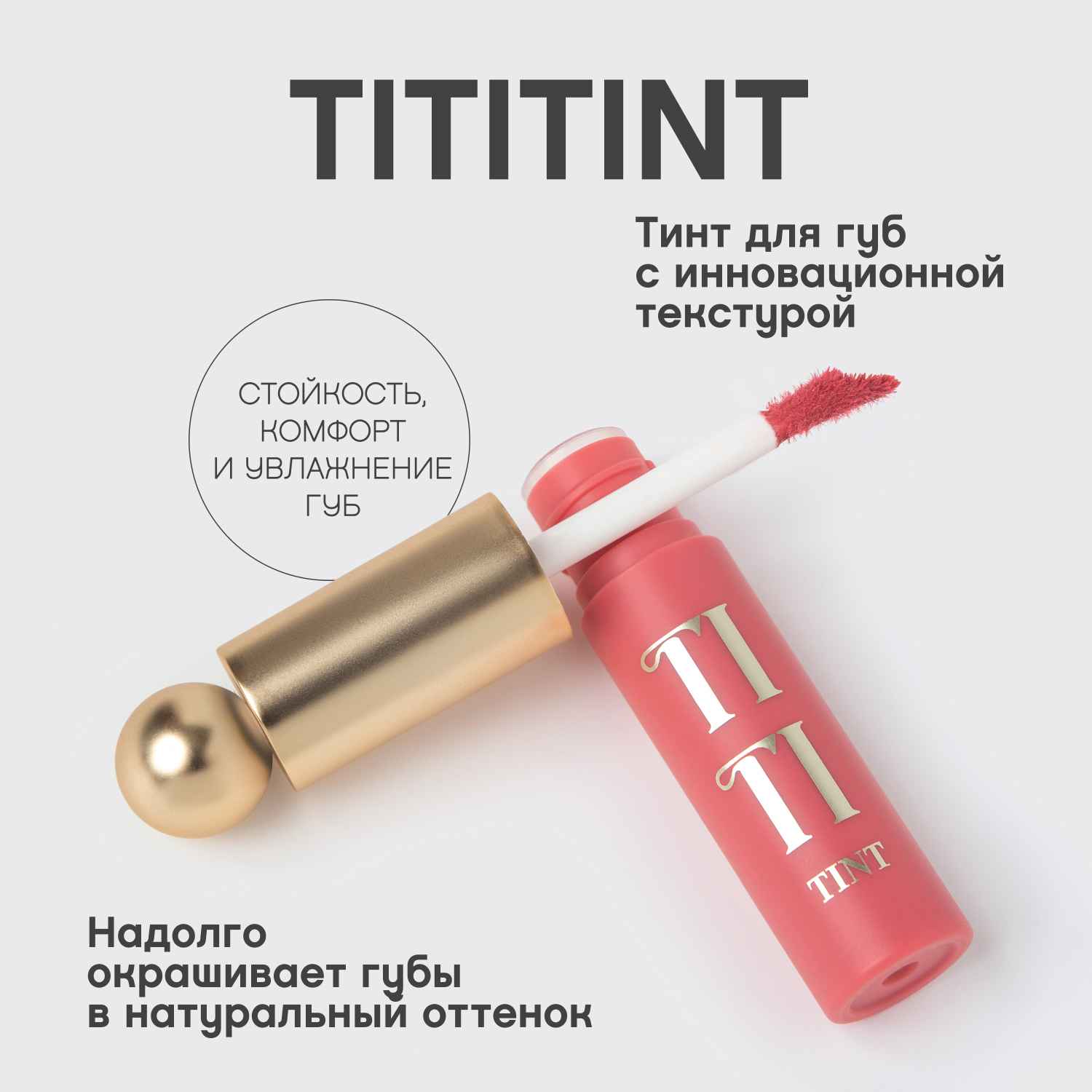 Шесть цветных тинтов Tititint с палитрой от кораллового 01 до насыщенного винного оттенка 06 имеют мягкую гелево-кремовую текстуру для макияжа с влажным финишем. Стойкая и тинтующая, но в то же время нежная текстура обволакивает губы невесомой вуалью, надолго окрашивая их в натуральный оттенок.
