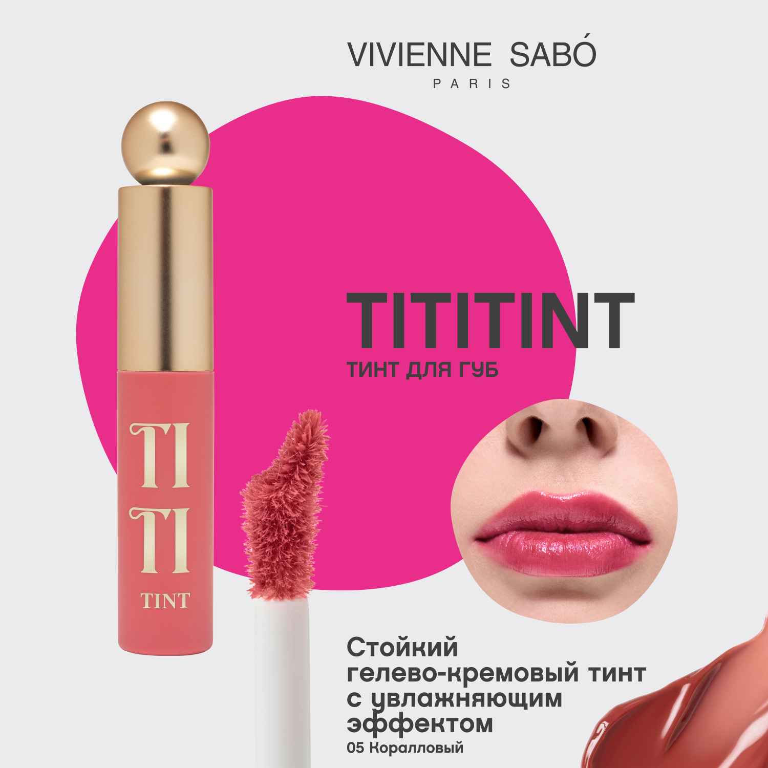 Tititint — восемь тинтов от Vivienne Sabó с совершенно новой инновационной текстурой. Они придают губам стойкий цвет, а также обеспечивают комфорт и увлажнение.