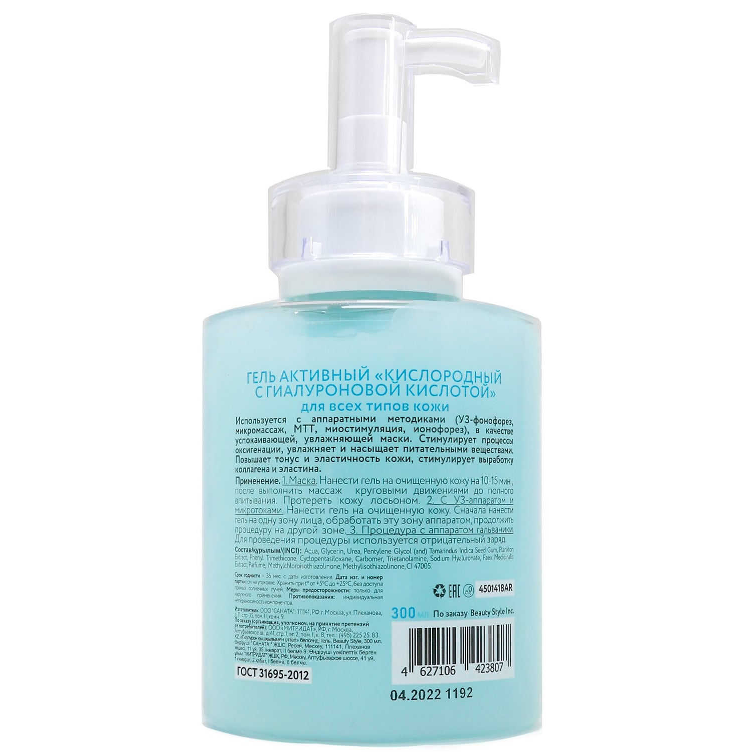 Маска: на предварительно очищенную кожу наносится гель и выдерживается 10-15 минут. В конце процедуры выполняется легкий массаж пальцами до полного впитывания. После ухода необходимо протереть кожу лосьоном.