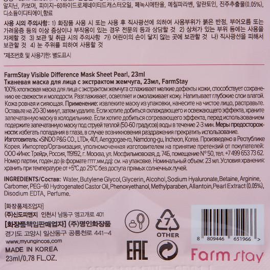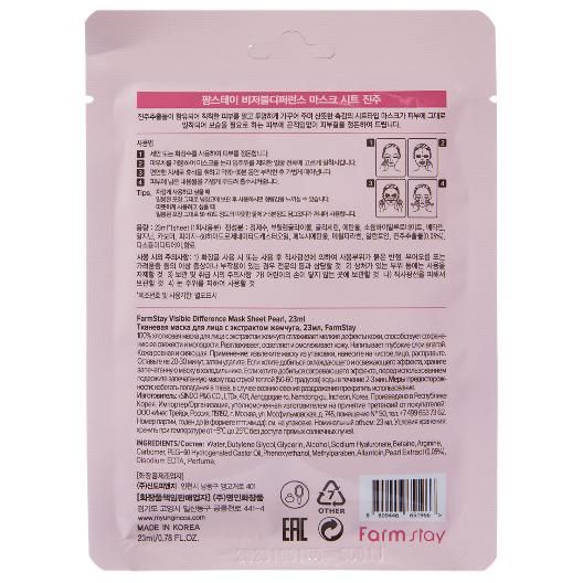 Маска для лица с экстрактом жемчуга Visible Difference Mask Sheet Pearl, разглаживает кожу, осветляет и омолаживает тусклую кожу. Маска для лица с экстрактом жемчуга кожу, уменьшает мелкие дефекты кожи, способствует сохранению ее свежести и молодости. Маска с экстрактом жемчуга, разглаживает кожу, осветляет и омолаживает тусклую кожу. Маска очищает кожу, уменьшает мелкие дефекты кожи, способствует сохранению ее свежести и молодости. В состав маски также входит: гиалуроновая кислота, аргинин, аллантоин и бетаин.