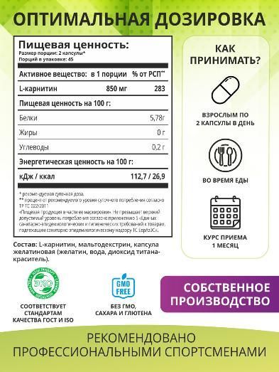 L-карнитин помогает сократить время достижения результата более чем на 30%. Аминокислота поможет похудеть и обрести стройное подтянутое и здоровое тело, увеличит продуктивность вашего организма и приблизит к достижению цели!