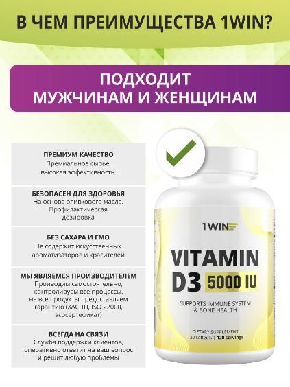 Комплексная пищевая добавка «Капсулированный витамин D3 5000ME» от компании 1WIN – это дополнительный источник так необходимого человеку витамина D3.