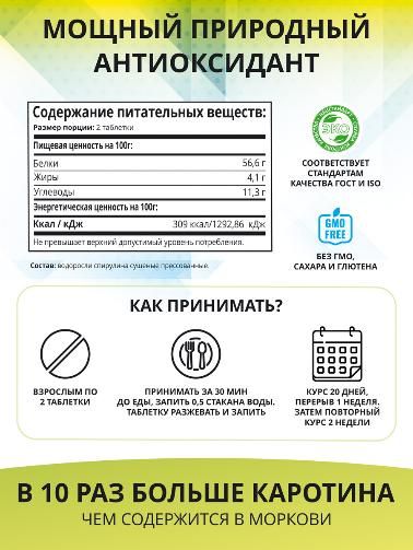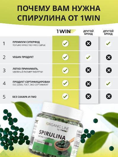 Пищевая добавка "Спирулина" от компании 1Win – отличное дополнение к ежедневному рациону. В спирулине содержатся природные антиоксиданты – каротиноиды, которые особенно полезны для укрепления зрения.