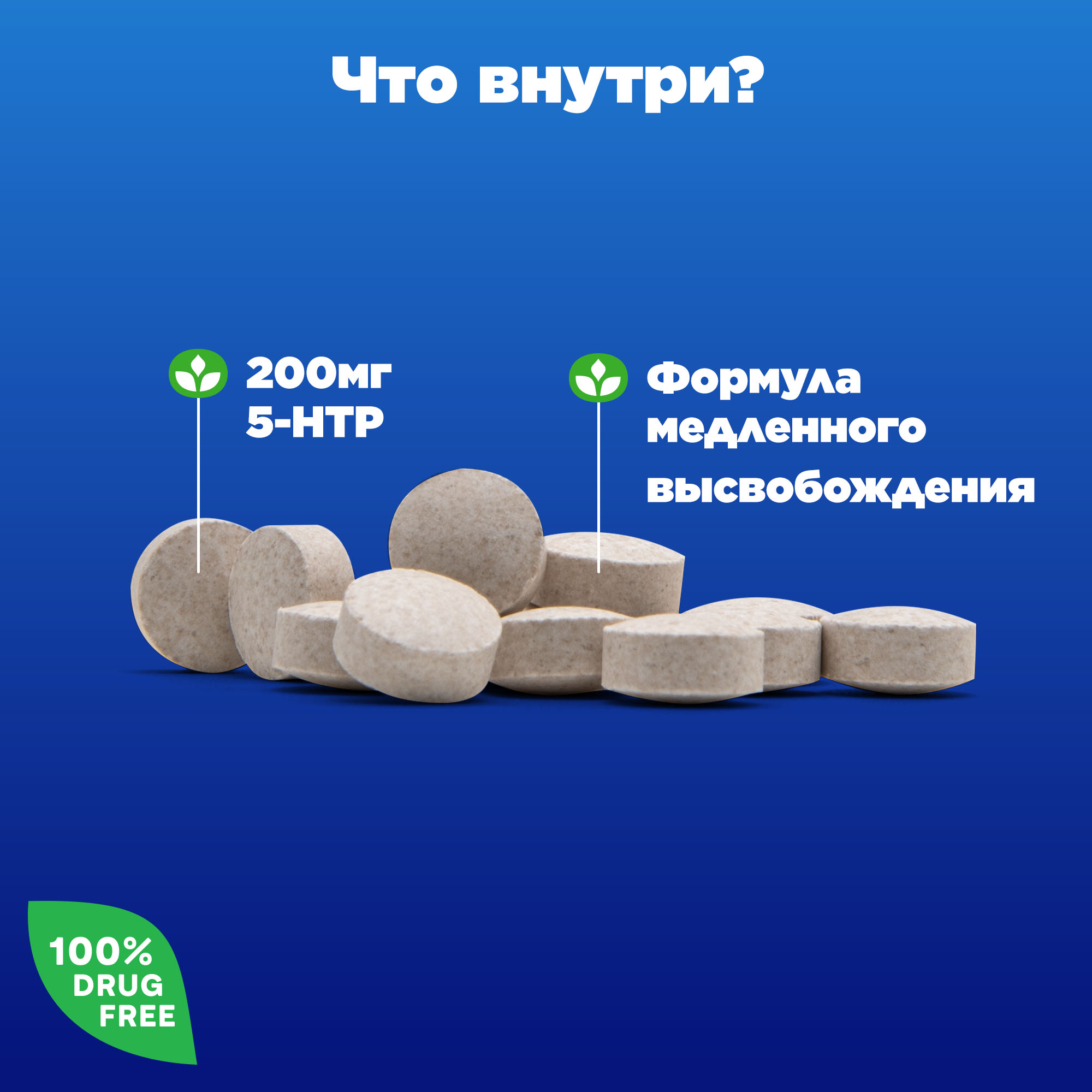 Состав: кальций (дикальцийфосфат), 5-гидрокситриптофан, носители: микрокристаллическая целлюлоза, метилцеллюлоза, стеариновая кислота (стабилизатор), гидроксипропилметилцеллюлоза (загуститель), антислеживающие агенты: диоксид кремния, стеарат магния, глицерин (агент влагоудерживающий).