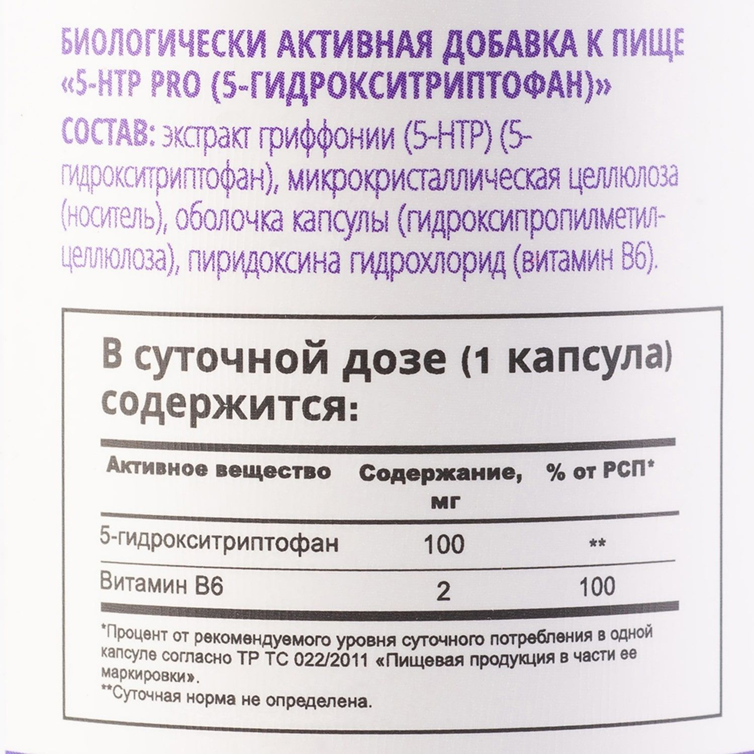 Состав: органический 5-гидрокситриптофан из экстракта гриффонии. Содержание в 1 капсуле: