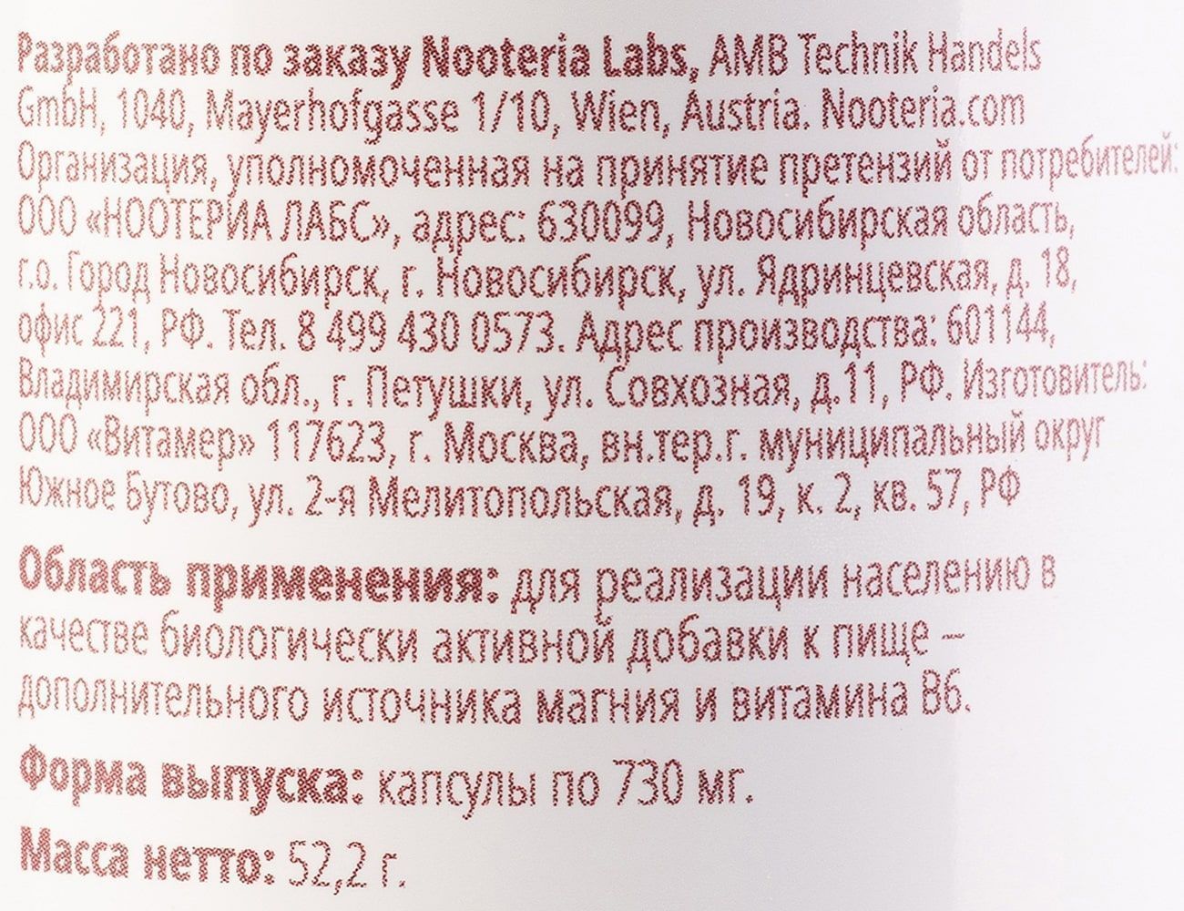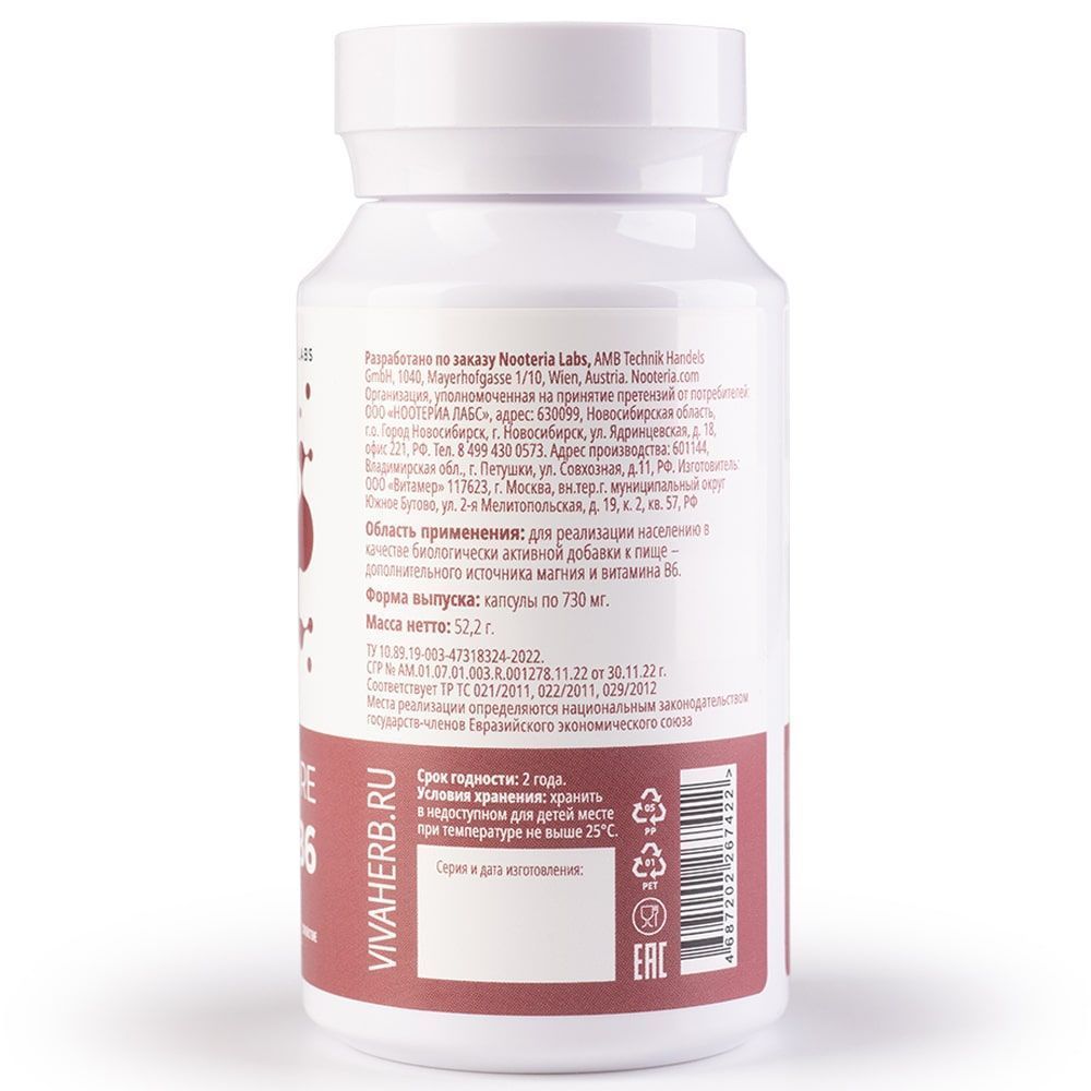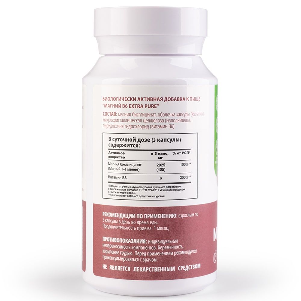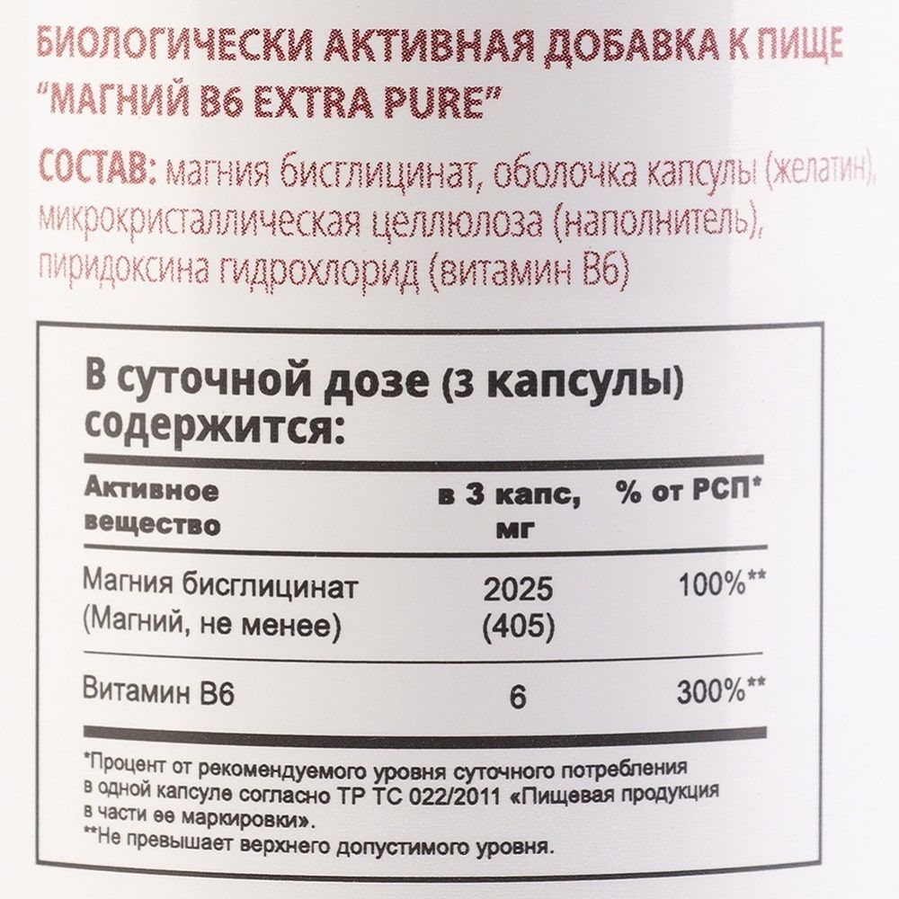 В 3 капсулах содержится: магния бисглицинат 20% 2025 мг, витамин B6 6 мг