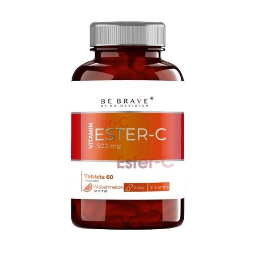 Витамин С Be Brave by Dr. Davidian выпускается в биодоступной и легкоусваемой форме аскорбата кальция (ester-c) в виде жевательные таблеток со вкусом арбуза во флаконе из темного стекла. По сравнению с обычным формами витамина С, данная форма усваивается в организме быстрее, сохраняет активность в организме дольше и не раздражает слизистую желудка.