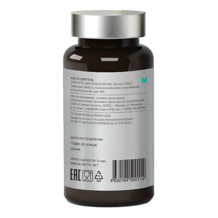Состав: глицин, носитель микрокристаллическая целлюлоза, экстракт Гинкго билоба (лат. Ginkgo Biloba), стабилизатор гуммиарабик, капсула (желатин, краситель титана диоксид).