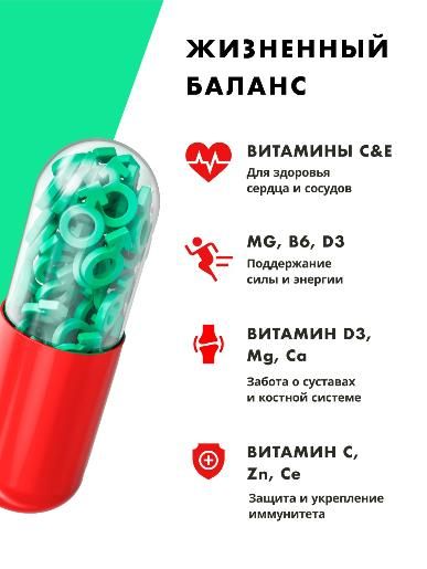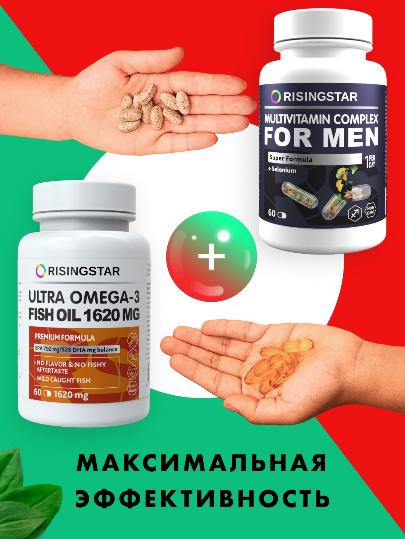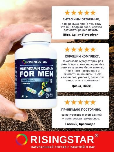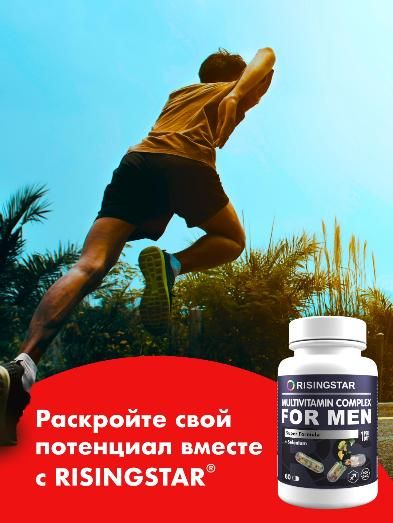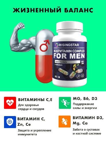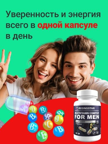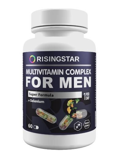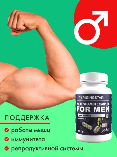 Способствует повышению работоспособности, снижению утомляемости, улучшению костно-мышечной системы, повышению адаптационных свойств и улучшению иммунитета. Минералы цинк и селен крайне важны для полового и репродуктивного здоровья мужчин. Цинк способствует активному клеточному делению, синтезу тестостерона и нормальному созреванию и подвижности сперматозоидов. Селен увеличивает кровообращение и улучшает сперматогенез, что способствует зачатию и лечению бесплодия. Синергетический эффект всех входящих в состав компонентов способствует профилактике и устранению гиповитаминоза и нехватки микроэлементов в условиях повышенных физических нагрузок и стресса для мужчин любой степени активности. Содержит Витамины группы B, А, Е, С, D, железо, биотин, йод не менее 50% от суточной нормы, а для некоторых и превышающих ее.