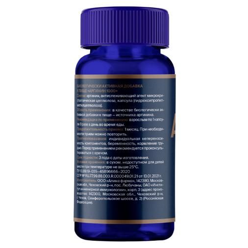 Состав: 3 вегетарианские капсулы содержат аргинина 1000 мг