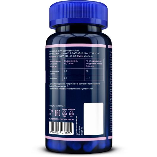 Вспомогательные вещества: микрокристаллическая целлюлоза, капсула (гидроксипропилметилцеллюлоза).