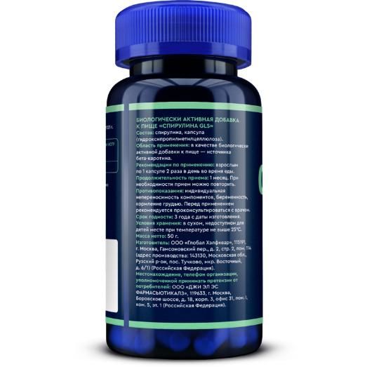 Состав: 2 вегетарианские капсулы содержат спирулина 800 мг.