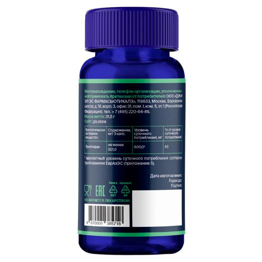 Состав: 3 вегетарианские капсулы (суточная доза) содержат триптофана 500 мг