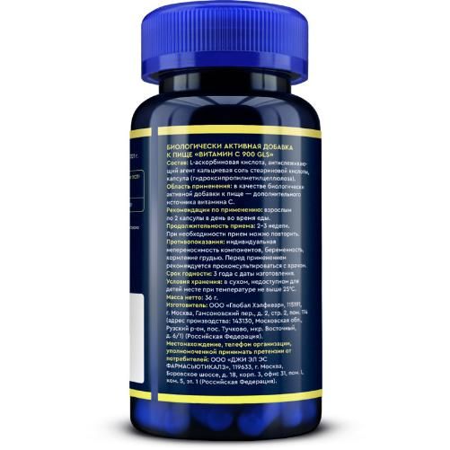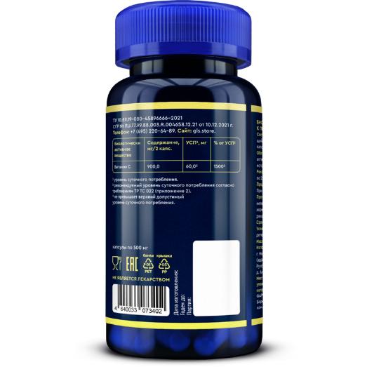 Состав: 2 вегетарианские капсулы содержат L-аскорбиновая кислота 900 мг.