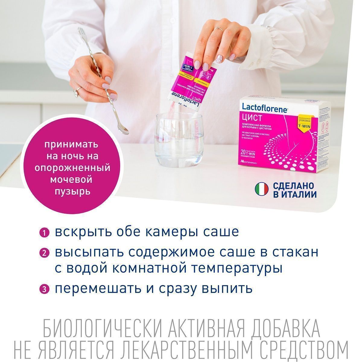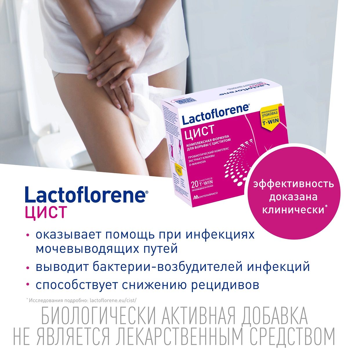Lactoflorene Цист– забудь о дискомфорте! Lactoflorene Цист – комплексная формула для борьбы с циститом. Активные компоненты в составе способствуют уменьшению болей и резей при мочеиспускании, снижению риска появления инфекций мочевыводящих путей и дискомфорта от их проявлений.