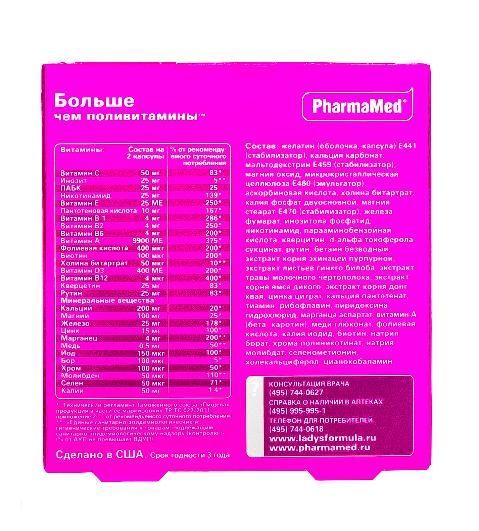 Напряженный ритм жизни, изменившийся характер питания, стрессы, экология, вредные привычки приводят к нарушениям работы всего организма, повышению заболеваемости и преждевременному старению. Как сохранить энергию и красоту молодости? Биокомплекс Lady's formula "Больше чем поливитамины" -устраняя дефицит самых необходимых для женского организма веществ, обеспечивает отличное самочувствие, защищает от болезней, дарит энергию и сохраняет красоту молодости.
