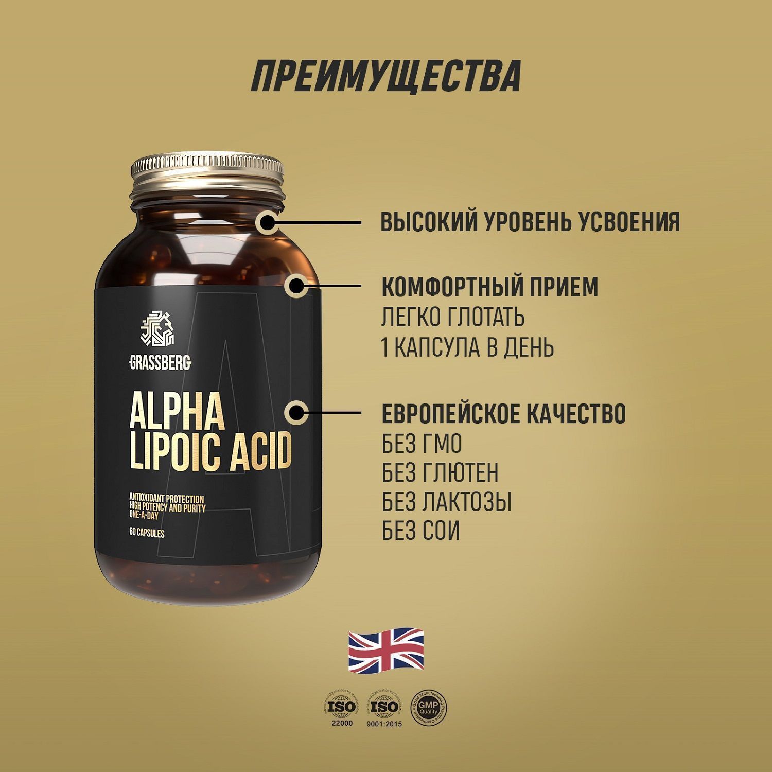 Альфа-липоевая кислота от Grassberg, может поддерживать уровень вашего энергетического метаболизма и участвовать в процессах омоложения клеток организма.