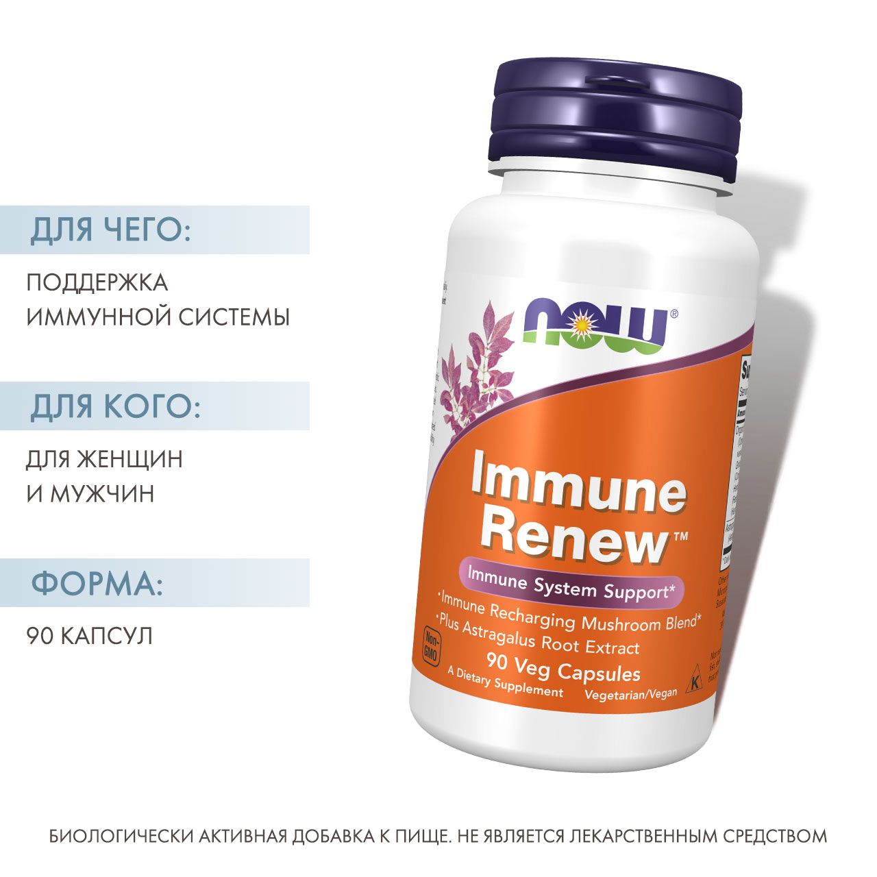 NOW® Иммун Ренью был специально разработан для поддержки иммунной системы с помощью стандартизированного экстракта астрагала и специальной смеси грибов.