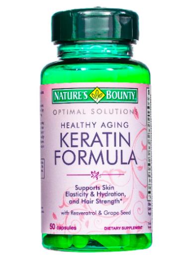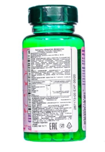 «Кератин формула» представляет собой уникальную комбинацию натуральных незаменимых биологически активных компонентов, которые будут способствовать росту здоровых волос и восстановлению поврежденных, а также в целом поддерживать красоту кожи и прочность ногтей. Солюбилизированный кератин, который входит в состав запатентованной формулы Cynatine® HNS Keratin обладает клинически значимым эффектом за счет высокой степени усвоения белка. Кератин способствует восстановлению естественного кератинового слоя, что позволяет волосам выглядеть более блестящими и шелковистыми. Комбинация кератина, биотина и цинка способствует росту волос, препятствует их выпадению. Кератин и цинк позволяют справляться с гиперсекрецией сальных желез, придавая волосам объем и ухоженный вид. Кератин и медь поддерживают образование такого фермента как меланин, который сохраняет цвет волос, а антиоксидантное действие минерала позволяет защитить волосы от негативного воздействия факторов окружающей среды. Витамины группы В позволяют усилить питание волосяной луковицы биологически активными веществами. Натуральные растительные антиоксиданты, такие как ресвератрол и биофлавоноиды экстракта из виноградных косточек способствуют приданию волосам блеска и сияния