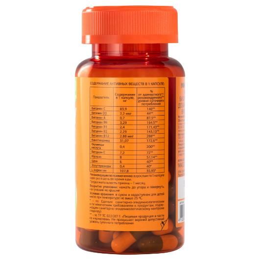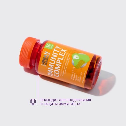 Биологически активная добавка к пище Urban Formula Immunity Complex рекомендуется в качестве дополнительного источника витаминов А, В1, В2, В6, В12, С, Е, D3, фолиевой кислоты, никотинамида, железа, цинка, L-карнитина и элеутерозидов. Для поддержания иммунитета и отличного самочувствия.