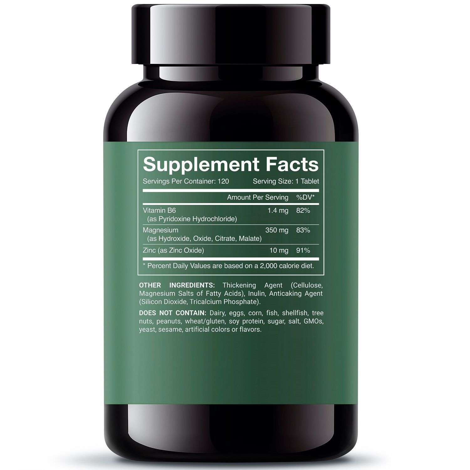 Состав: гидроксид магния, оксид магния, микрокристаллическая целлюлоза (носитель), инулин, оксид цинка, диокисид кремния (агент антислеживающий), магниевые соли стеариновой кислоты (агент антислеживающий), орто-фосфат кальция 3-замещенный (агент антислеживающий), малат магния, цитрат магния, пиридоксин гидрохлорид, гидроксипропилметилцеллюлоза (загуститель).
