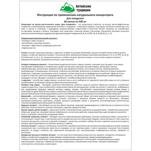 Концентрат усиливает метаболизм, оказывает эффективное очищающее действие, нормализует вес тела.
