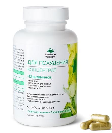 Концентрат "Для похудения" с L-карнитином, бромелайном и экстрактом померанца + 12 витаминов, 60 капсул