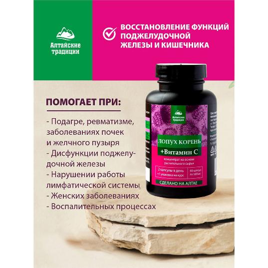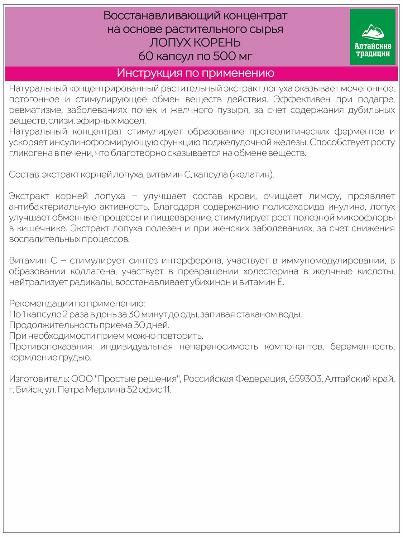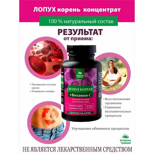 Состав: экстракт корней лопуха, витамин С, капсула (желатин)