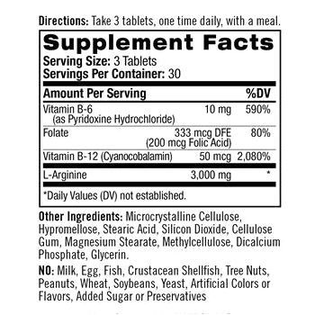 Активы: L-аргинин, витамины В6 (пиридоксина гидрохлорид), В9 (фолиевая кислота), В12 (цианокобаламин).